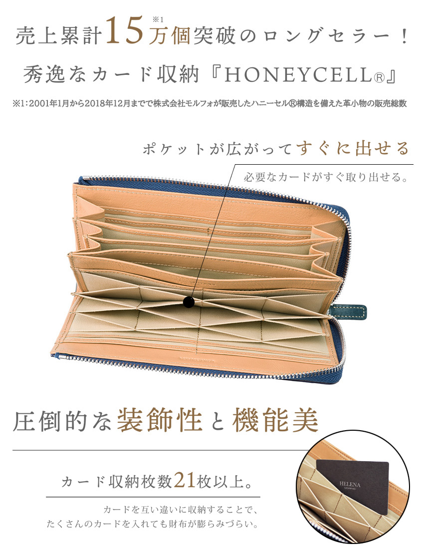 下のハニーセルL字型ファスナー長財布はロングセラーでかなり売れている財布です。